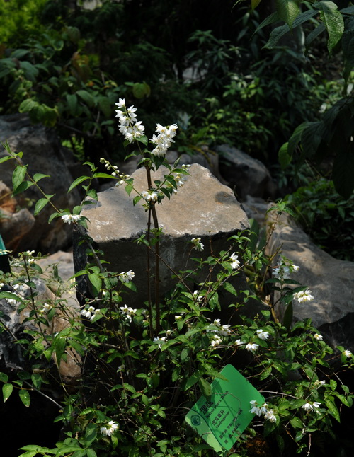 溲疏(Deutzia scabra Thunb.)为虎耳草科溲疏属落叶灌木,学名:别名:空疏、巨骨、空木等。中国特有,原产长江流域各省,多生长于山谷、道路岩缝及丘陵低山灌丛中。树皮薄片状剥落,小枝中空,红褐色,幼时有星状柔毛。直立圆锥花序,花瓣5枚,长圆形钟状,花白色或带粉红色斑点。叶片对生,有短柄;花期4-6月,果期10-11月。除白花溲疏外,有一种托比溲疏,也叫比利时溲疏,是粉红色的,另还有重瓣变种,更加美丽。