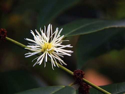 四药门花的花期从9月至次年2月陆续开放,常常凋谢的花朵还在枝上,新的花朵已纷沓而至。虽然它的花期长,花量多,但结实率非常低。我园科研人员于2008年报道了该种群传粉生物学的初步研究结果,揭示该种群存在自交衰退现象,其自然结实率仅有4.79%(成功的自花传粉植物的自然结实率约为85%),即使辅以人工异株授粉,其结实率也只有6.67%。由此,四药门花种群的保护刻不容缓。