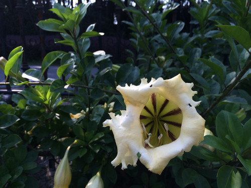 初秋的广州,虽午后不减炎热但也能感受早晚的凉风习习,让人感觉甚是舒爽。漫步在沙漠植物室外围,有一种高调的大喇叭花开得欢快热烈,让人无法忽视它的存在,它就是金杯花。