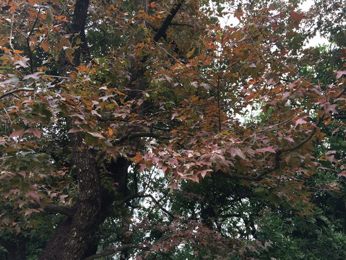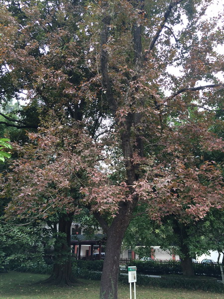 每逢秋天,枫香的叶子由绿变红,呈现出一派秋色胜春光的美景。