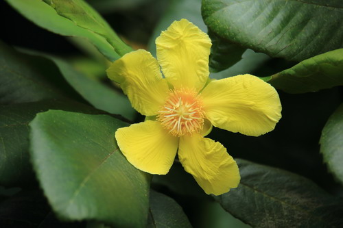 与第伦桃同属的“姐妹”还有大花第伦桃(Dillenia turbinata Finet & Gagnep.),其花期早于第伦桃,于每年3-4月开花,花大,有香气,花瓣黄色,雄蕊呈辐射状。果期6-8月,果球形,暗红色,多汁略带酸味,可作果酱原料。现在正是大花第伦桃果实成熟季节,满树挂满红红的“桃子”,颇为诱人。