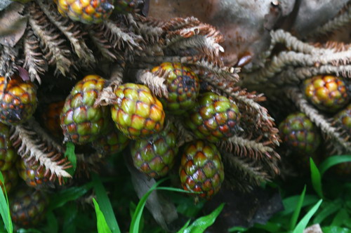 酒椰的生活史很特别,类似竹子,为一次性开花结果的植物,一生只开一次花,结一次果,然后就全株枯死(开花结果这一过程通常需2-3年),生命相对短暂,在原产地一般20年就终止了生命的延续。华南植物园的这几株酒椰至今已经33年了,近年在广州第一次开花结果,结完果后(果实成熟需1年半时间)它们也将走完自己的一生。如今,在华南植物园棕榈园还能看到正在结果的酒椰,大家不要错过了。