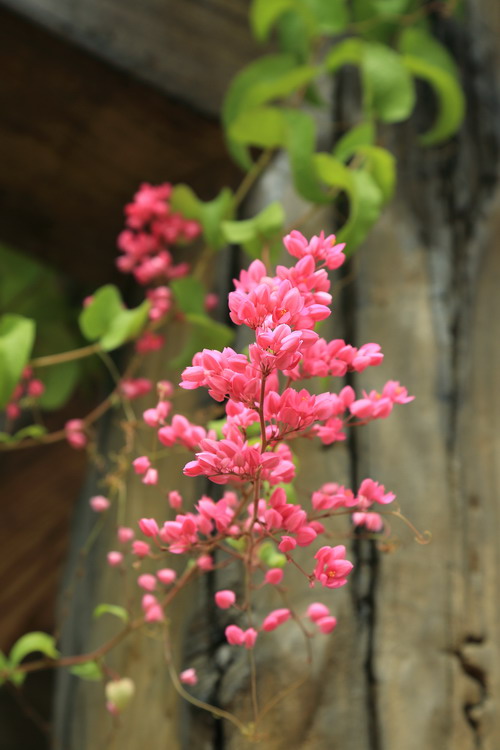 十月,虽然南国广州还是气温高企,但在北方,已进入秋天丰收的季节,而选择在十月结婚的人士也真不少,大家是不是这个月都收到不少“粉红炸弹”呢?今天我们要介绍的花的花语是“爱的链锁”,象征着一种爱的承诺。在西洋神话中,相传有位貌美的女神吸引了众神,却无人能打动她的芳心,有位聪明的山神从山里采回许多藤草,编织成藤衣和项链,送到女神的住处。女神开门的刹那,因阳光照射“藤衣和项链”绽放出千朵粉灿呈珊瑚状的小花,山神因此赢得了女神的芳心,这种藤草就是珊瑚藤。