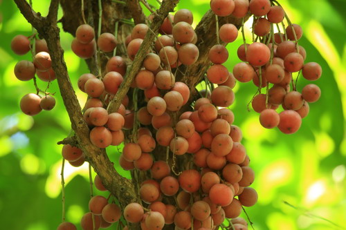 木奶果不仅产量丰富,而且是热带地区典型的老茎生花、老茎结果树种,是植物适应热带雨林生境条件以获得更多昆虫授粉的一种生态策略。每年六、七月间,一串串指头般大小的扁圆形果实挂满了大树,从树干基部连到树顶,甚至坠弯枝条,由生至熟,或绿或黄或红;似绿玉雕成的小球、似乳黄的玛瑙珠子、或似鲜红的珊瑚念珠,煞是招人喜爱。其果肉多汁,酸甜可口,生津止渴,消暑解热。