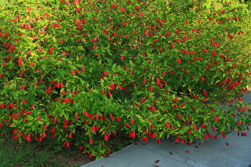 原产墨西哥至秘鲁及巴西,现广植于热带、亚热带地区。枝繁叶茂,花朵艳丽,全年开花,主供园林观赏用,在南方热地是极好的绿篱植物。药用有拔毒、消肿的功能。