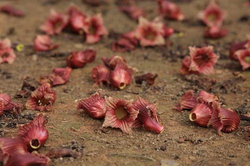 “人世间有百媚千红,唯独你是我情之所钟”,叉叶木的花没有艳冠群芳,但无数人偏偏不爱红妆爱素颜珍视它,就像某些东西需经过时光的发酵,你才会发觉它的弥足珍贵一样,经过岁月雕琢的叉叶木自有奇妙之处,形美志更坚。叉叶木属于外来种,树形不整齐,原产南美热带地区,有着浓郁的异域风情,为热带雨林里中下层树种,和紫葳科的火烧花、铁西瓜等都具有典型 “老茎生花结果” 特征。植物一般在一、二年生的枝上开花结果,但在热带雨林中植被丰富,遮天蔽日,生存竞争异常激烈,花朵为便于植物“红娘”更好为其传粉,也为了躲过狂风暴雨,此外其粗壮的树干也能承受果实和大量种子的重压,有利生存繁衍,于是经过漫长岁月进化出了老茎甚至老干上开花结果的本领。叉叶木的生存智慧着实让人大开眼界。人类生存需要智慧,植物亦然。