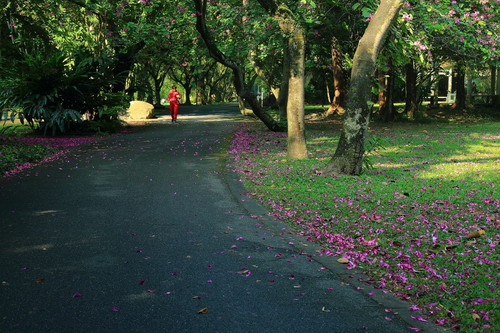 红花羊蹄甲观赏地点:景观园路、望瀑桥等地