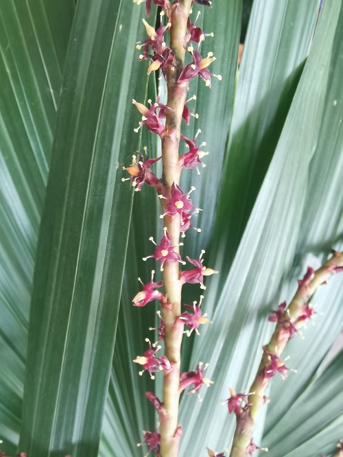 琼棕很低调,没有张扬的花朵和炫目的色彩,只是默默地奉献一片绿意,为脚下的土地挥洒绿荫。只有到了温暖的春天,才能看到她开花结果,花较小,虽不惹眼,数量却不少,蓬蓬勃勃。她的花和果实,平实却与众不同,独具一格。她的美,需要静下心来细细品味。