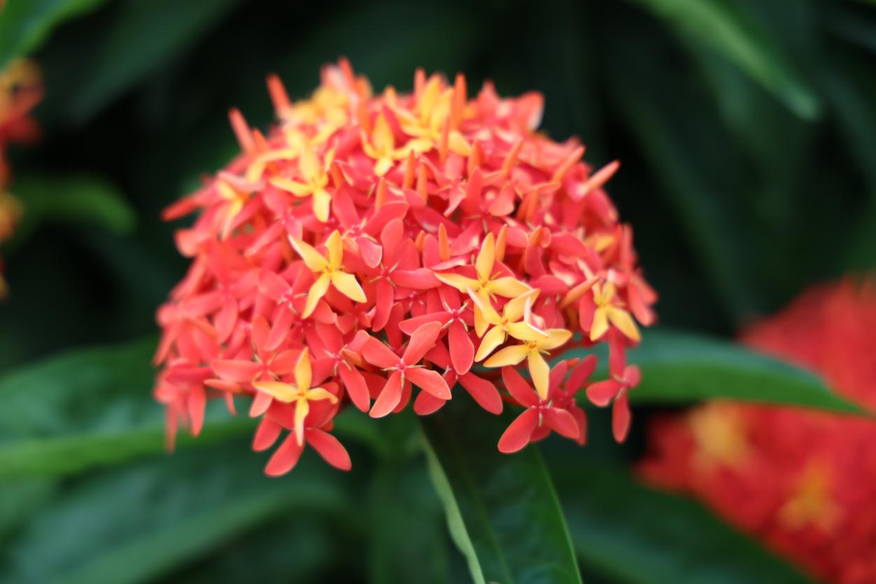 龙船花,花型优美、花蜜丰富,吸引蝴蝶等昆虫,端午节开放应时应景。