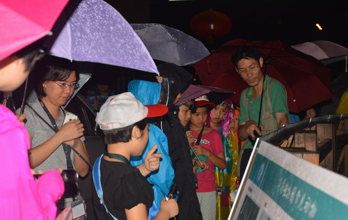在夜观中,指导老师让同学们都近距离地观察这些昆虫们。通过让同学们用触摸的方式感受了斑腿泛树蛙跟饰纹姬蛙的区别,它们最主要的区别的就是腿,树蛙的脚趾上有吸盘,同学们都很积极地体验了斑腿泛树蛙的脚趾吸盘吸附在自己手上的感觉,并且亲眼见证了一回真正的“蛙泳”。夜间的“小灯笼”萤火虫让同学们跟家长们惊奇不已,大家今天才知道,原来这么弱小的萤火虫竟然是以蜗牛为食,并且这黑夜中的小精灵只有短短7天的寿命,孩子们都自发地感受到这短暂而顽强的小生命的不易。