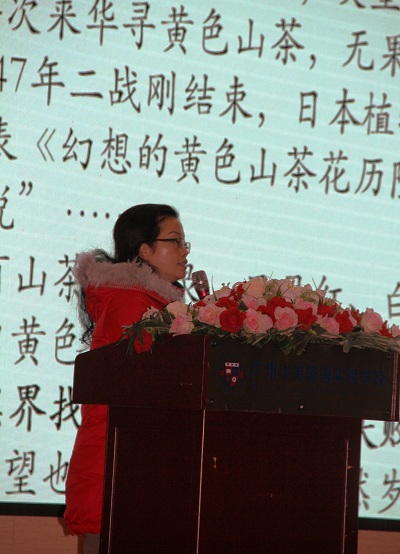 报告厅内,华南植物园高级工程师季申芒为大家带来了题为《明明可以靠颜值,却偏偏要拼才气的山茶君Camellia》的科普报告,从山茶花的命名、分类、生长习性和形态特征,说到它们惊心动魄的前世今生,小小的一片茶叶是如何漂洋过海掀起世界政局风云;油茶和金花茶各自在美丽的外表下隐藏着的丰厚内涵;数千年的栽培历史中,才貌双全的山茶花不仅被历代君王的诗词歌赋所咏颂,流传到欧美后又成为文豪们的灵感,创作出《茶花女》等传世名作,更成为时尚名牌香奈儿等的经典标志,在世界各地的影响历久不衰……