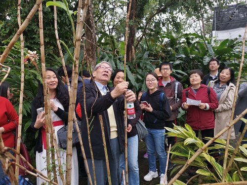 在陈老师介绍姜园建设的历史过程中,大家也看到了一支孜孜不倦、为研究姜目植物付出全部心血的科学家队伍,正是因为他们经过半个世纪的努力,才将姜园建设成为目前世界上收集种类最多、面积最大的姜目植物专类园,我们才能在姜园里见到和认识拥有300多种成员的姜目家族。