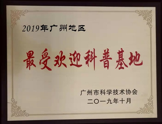 ——被授予“2019年广州地区最受欢迎科普基地”称号