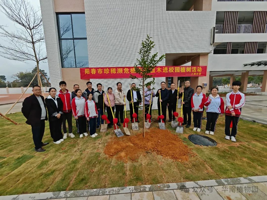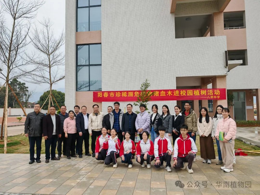 25日,调研团一行来到八甲镇澄垌村猪血木现场进行实地调研。随后抵达八甲中学进行座谈交流,对“珍稀植物进校园”科普实践模式进行了专业指导,共同探索猪血木融入课堂,推动学生参与科研项目与生态考察,探索非遗传承与现代科技结合的创新路径;并与该校师生一起种下了猪血木树苗,为美丽的八甲中学校园增添新绿。