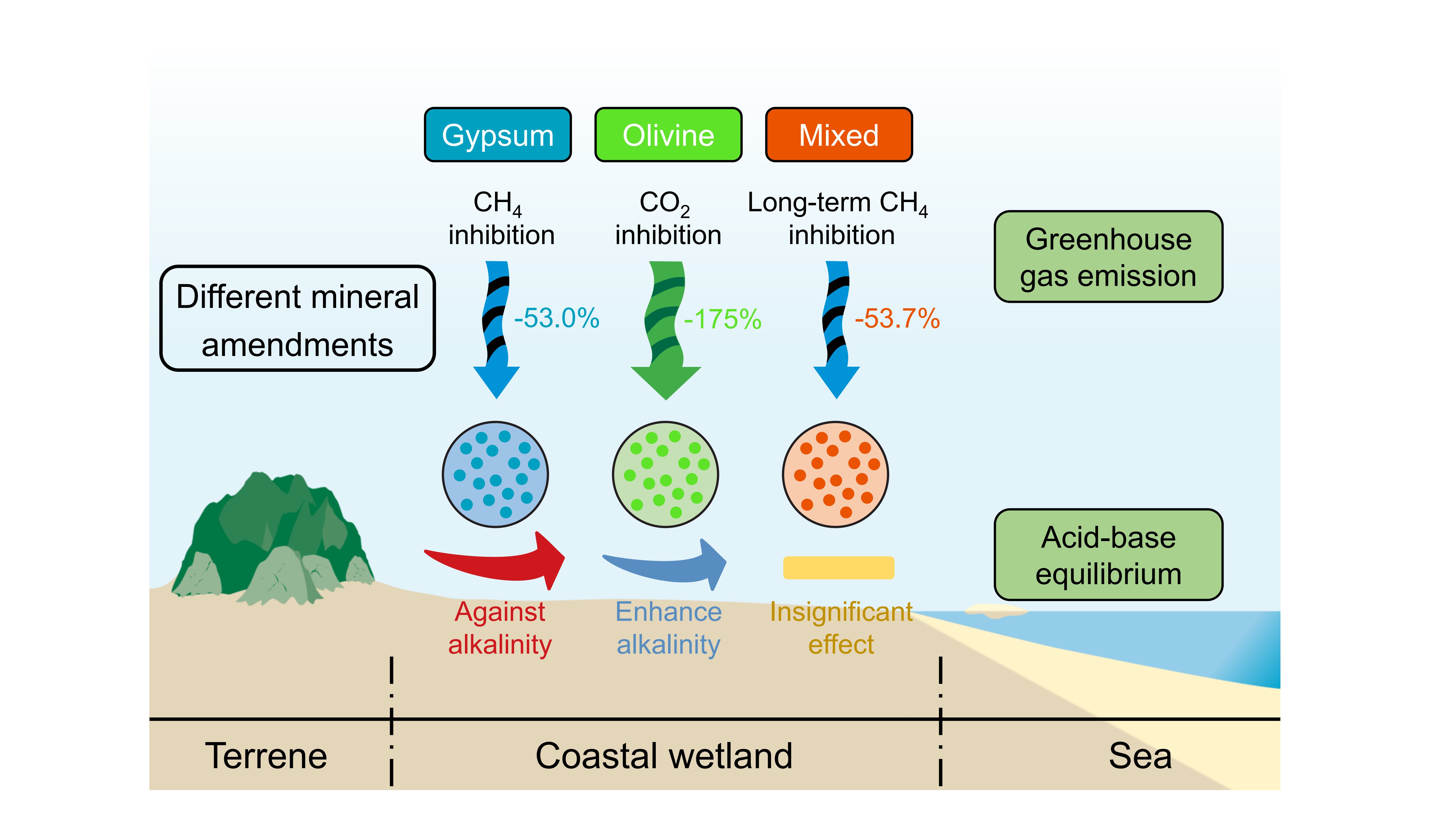 随着全球气候变暖和海洋酸化问题日益严重,人们开始探索在沿海地区使用矿物添加作为增强碳汇和提高碱度的一种有前景的策略。然而,大多数相关研究主要集中在二氧化碳(CO2)吸收上,而对甲烷(CH4)减排的研究则相对较少,尽管甲烷是一种更强大的温室效应气体,其温室效应是二氧化碳的约28至36倍。