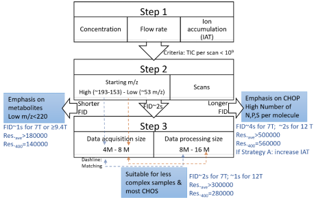 图1. 基于超高分辨质谱FT-ICR MS分析有机质的信号调试策略指南概要图