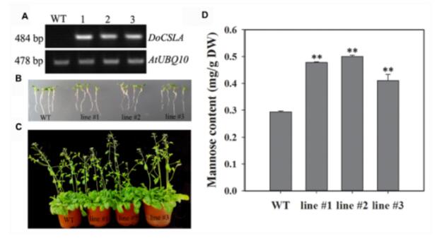为了揭示铁皮石斛多糖生物合成代谢调控的分子机制。中科院华南植物园生物技术育种研究组的张建霞博士和何春梅博士在段俊研究员的指导下,通过转录组测序与分析,构建了铁皮石斛不同发育阶段的基因表达信息库,确定了铁皮石斛中果糖和甘露糖的代谢途径及参与其中的135 个基因,筛选鉴定了430个 糖基转移酶、89个纤维素合成酶基因和627个参与铁皮石斛次生代谢的转录因子;其中 37个差异表达的纤维素合成酶基因在铁皮石斛的甘露聚糖合成中起着重要作用;克隆分析了多糖合成途径中的关键酶基因DoPMM和DoCSLA6,发现它们除直接参与了铁皮石斛多糖合成代谢途径之外,还与铁皮石斛的抗逆性有关。