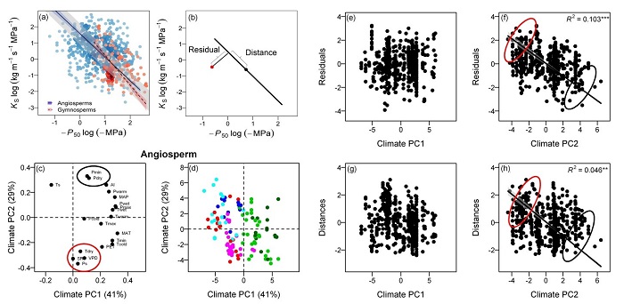 图1. 全球尺度植物水力权衡与气候季节性的关系。