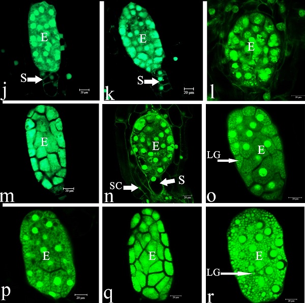 图2. 摩帝兜兰胚胎受精后的发育过程。