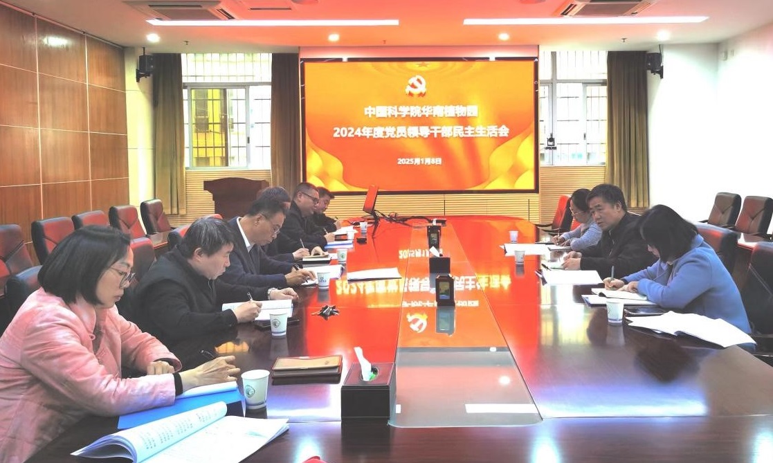 1月8日,中国科学院华南植物园党委召开2024年度党员领导干部民主生活会。会议由党委书记、副主任魏平主持,广州分院分党组书记/院长陈广浩、党建工作处(纪检办公室)处长周晶及副处长王莉惠到会督导。园领导班子成员参加会议,其他党委委员及有关同志列席会议。