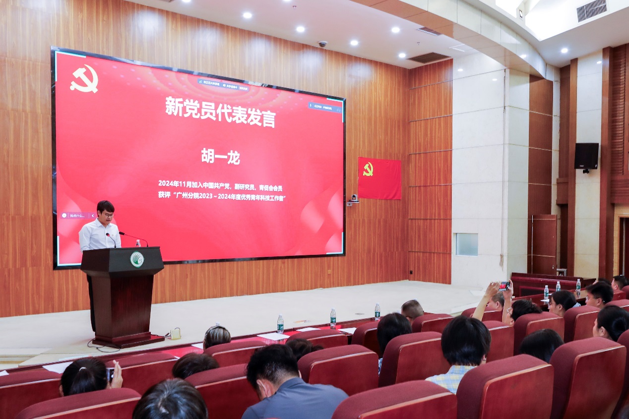 大会在庄严的《中华人民共和国国歌》声中拉开帷幕。在鲜红的党旗下,党委委员、副主任杨子银带领新党员向党旗庄严宣誓。农生中心副研究员胡一龙同志作为新党员代表发言并作出庄严承诺。