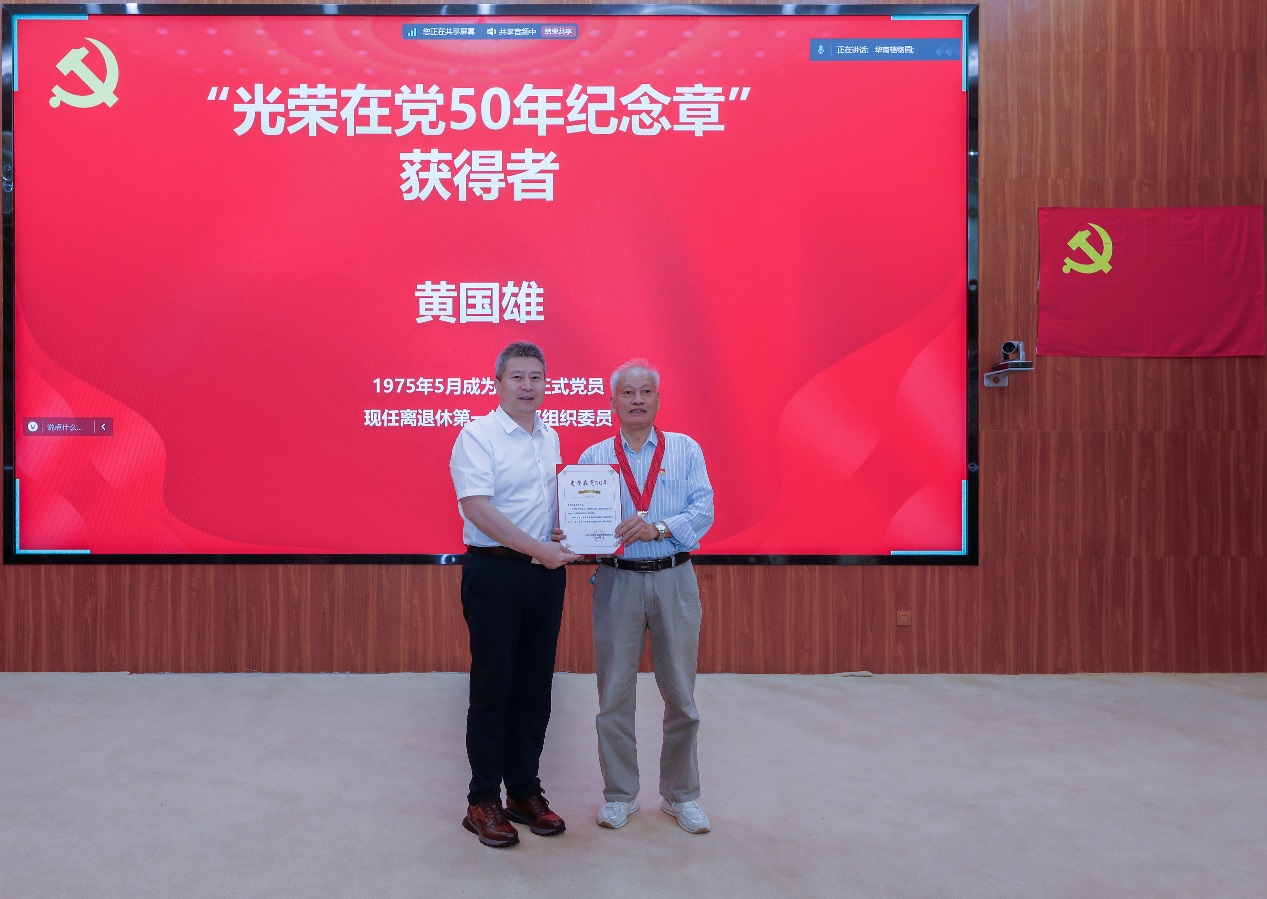 闫俊华为“光荣在党50年”老党员颁发纪念章
