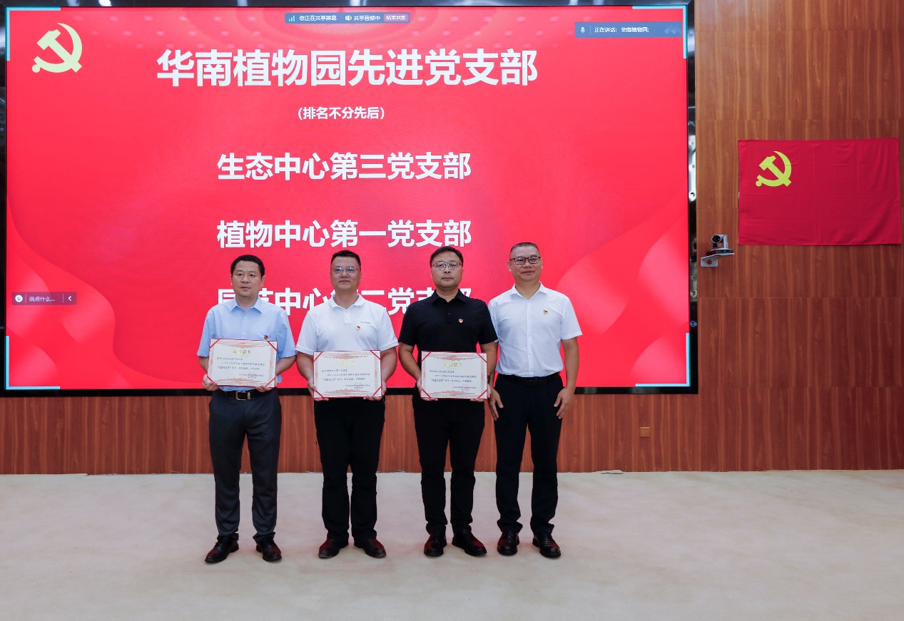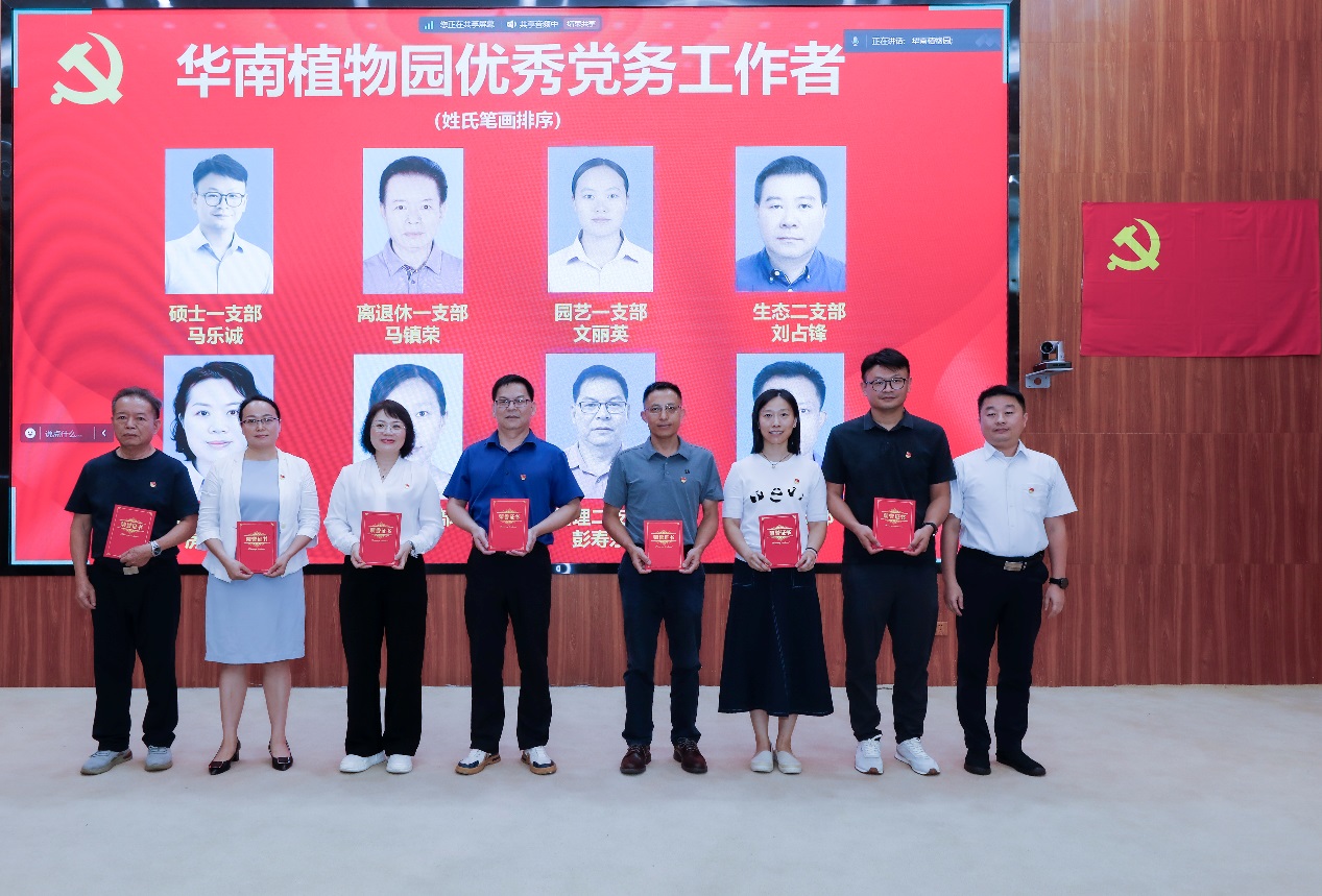 随后党委委员、副主任叶清宣读“荣获‘光荣在党50年’纪念章获得者名单”“省直机关四强党支部获批名单”以及“党委关于表彰先进党支部、优秀共产党员和优秀党务工作者的决定”。领导班子成员及党委委员为获奖集体和个人颁发了奖牌和荣誉证书。园地管理处副处长吴兴同志作为受表彰代表发言,他表示将化荣誉为新动力,为华南国家植物园建设贡献力量。