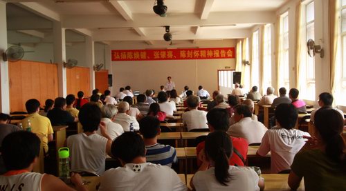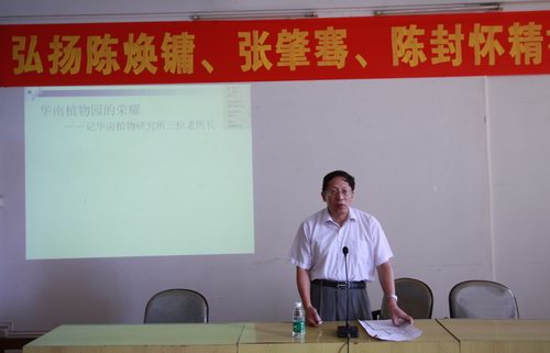 陈忠毅研究员在“创业、爱国、科学、奉献”的报告中以生动的事例和图片系统介绍了中国现代植物学研究奠基人—陈焕镛院士,一生奉献的学者—张肇骞院士,以及中国现代植物园奠基人—陈封怀教授的生平事迹,强调华南植物园要大力弘扬前辈的“艰苦创业、报效祖国、治学严谨、献身科学、忠诚爱国、奉献社会”的优良传统与文化,以求真务实的精神推动华南植物园的发展。吴德邻研究员在“缅怀前辈事迹,弘扬焕镛精神”的报告中介绍了陈焕镛院士在中国植物分类学、研究机构的建立及学术成就等方面的卓越贡献,以生动翔实的事例对陈焕镛院士的理想、创新、敬业精神进行了阐述。报告中提到,陈焕镛踏实的工作作风和严谨的治学态度、创业敬业精神永远值得我们学习,我们要学习陈老有理想、有远大目标的创业精神,学习他思想创新、脚踏实地的工作作风。园艺中心党支部、研究生党支部及管理部门党支部的蚁伟民和宋政平、胡建竹、李林军和方中明、俞海霞等分别就创新文化建设的体会、如何弘扬“三老”精神、弘扬华南植物园特色创新文化谈了自己的看法与体会。