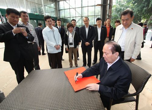 深秋季节,华南植物园金桂迎秋,清风习习,一片和谐景象。11月27日,全国人大常委会副委员长司马义?铁力瓦尔地在全国人大常委会副秘书长李连宁、广州市人大副主任郑红等陪同下到华南植物园参观考察。