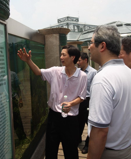 访问期间,任海陪同上海分院代表团重点参观了世界植物奇观—温室群景区。他们兴致勃勃地参观了温室的环境模拟、雨林景观的营造和珍奇植物的园艺布局,对精湛的园林景观以及引种自世界各地的奇异植物和高水平的保育工作表示了赞赏和肯定。