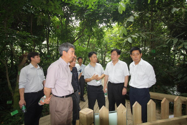 吴建国一行在黄宏文等陪同下还实地考察了华南植物园的办公区、住宅区、研究生公寓等科研与生活设施,并参观了展览温室群和部分专类园等景点。