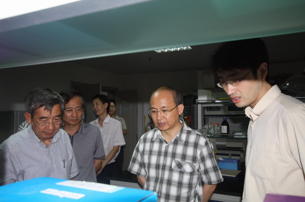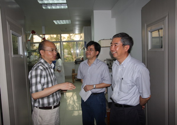 随后,张亚平一行重点考察了华南植物园实施三个重大突破的各研究中心实验室和公共实验室。在综合实验大楼各层的专业实验室里,各课题组研究人员向张亚平介绍了各自的研究方向及科研成果,特别是在植物转基因工程、新品种培育、环境治理与生态安全等方面的最新进展。张亚平认真听取了介绍,不时与科研人员亲切交谈,并对学科方向、人才引进、成果转化、考评机制等方面给出了指导性意见。在公共实验室里,徐信兰主任简要介绍了实验室的历史、规模和为园内外科研工作所做出的贡献,以及“创新三期”以来公共实验室建设情况。张亚平对华南植物园公共实验室规范化建设和管理给予了肯定。