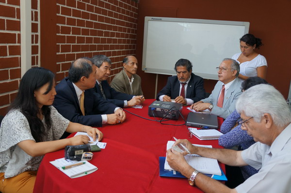 4月27日,在中国驻秘鲁大使馆的协助与安排下,华南植物园代表团访问了秘鲁全国科技及技术创新委员会(简称CONCYTEC),与委员会主席Victor Carranza Elguera等重要成员进行了会谈,洽谈了合作意向。中国科学院曾在2005年由陈竺副院长代表与该委员会共同签署了《中国科学院与秘鲁全国科技委员会学术交流与合作协议》,此次代表团在该协议基础上洽谈了未来双方共同感兴趣的生物多样性合作意向,进一步推进与秘鲁国家机构的合作。中国驻秘鲁大使馆文化参赞石泽群陪同参加了此次访问。