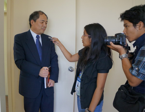 秘鲁当地媒体进行采访报道