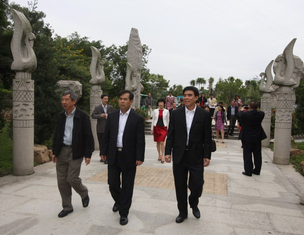 调研途中,黄宏文详细介绍了广州第一村的历史底蕴、建设背景和园林规划建设情况。他说,飞鹅岭新石器时期遗址被誉为“广州第一村与地带性植被园”,整个景区分为陶艺馆、考古场、树屋、寻根洞、古村落等主题区,以1956年飞鹅岭考古遗址出土的文物为蓝本,复原了新石器时代古人的刀耕火种、狩猎、制陶、纺织等生产活动,又与本土特色的地带性植被完美融合,充分展示了久远而灿烂的岭南文化。游客可以充分了解到南粤先人的文明、历史和文化。