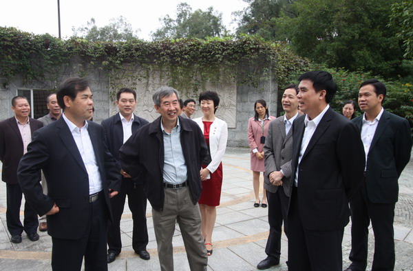11月23日,广州市委常委、宣传部部长甘新,广州市天河区委书记、区人大常委会主任石奇珠等一行20余人考察华南植物园。华南植物园主任黄宏文、党委书记任海及综合办、园艺中心、合作交流处、财资处等领导热情接待并陪同调研。