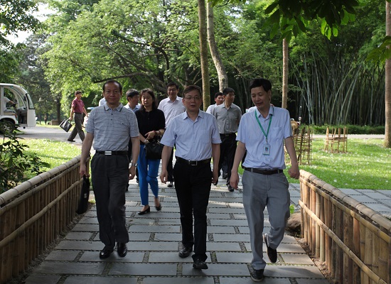 侯建国一行现场调研了华南植物园展览区龙洞琪林、荫生园、苏铁园和温室群;深入了解华南植物园在兰花新品种繁育、濒危植物报春苣苔回归,枸杞、石斛、甘草等高值经济作物的发掘和产业化的研究与应用,及香蕉试管苗的工厂化生产等方面情况。