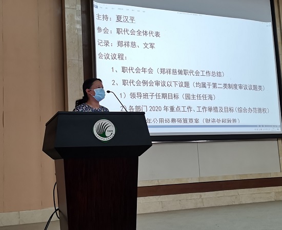 首先召开的是职代会年度大会。职代会主席郑祥慈报告了一年来职代会工作情况、本次提案的征集情况以及2020年度工作计划。本次年度大会征集到展览区旧宿舍区增建单车棚及安全充电装置、展览区旧宿舍区机动车辆道路硬化、陈焕镛研究员及副研聘期内保留岗位津贴待遇、差旅费实行住宿费包干补助并行报销合计4项提案,经过职代会主席团初审、园党政主要领导复审,4项提案全部被列为正式提案提交职代会投票表决。