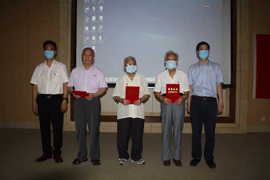 魏平、任海为老党员颁发荣誉证书