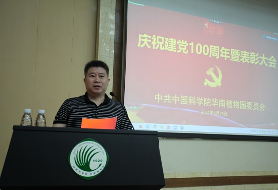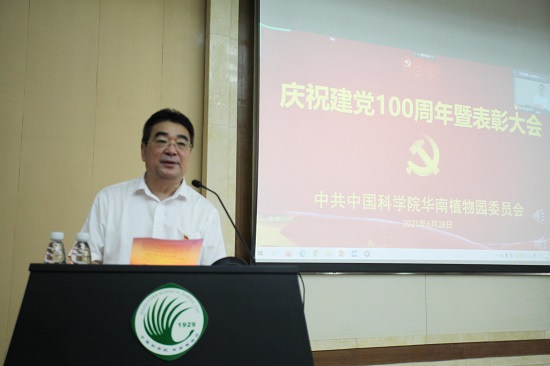 6月28日,华南植物园通过视频会议方式召开庆祝建党100周年暨表彰大会,园党政领导班子成员、纪委委员,离任的党委、纪委委员,获表彰的先进集体代表和个人,新党员代表出席主会场会议。在主会场及12个分会场参加会议的党员共370余人。党委副书记/纪委书记徐海主持会议。