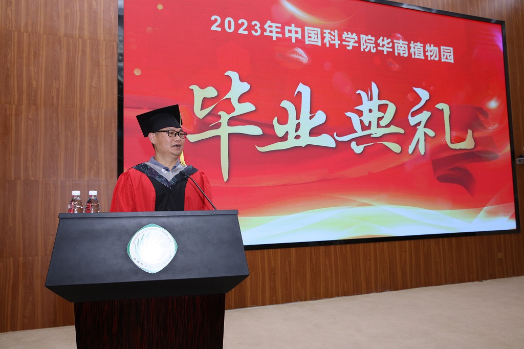 6月20日下午,中国科学院华南植物园2023届研究生毕业典礼在一号实验楼第一会议室隆重举行。今年共有138名研究生毕业,其中博士45名,硕士93名,包括4名留学生。园主任任海,副主任叶清,党委副书记、纪委书记徐海,部分学位委员会委员,研究生导师代表,管理部门负责人,毕业生及亲友代表等参加。典礼由叶清主持。
