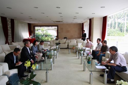 5月26日,日本丸善制药株式会社社长井元胜惠率领常务董事小川进、属下综合研究所所长水谷健二等一行5人访问华南植物园。植物园主任黄宏文及吴国江、魏孝义、谢海辉、王瑛等科研人员热情接待并开展交流。