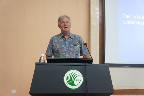6日上午报告会,华南植物园200多名师生参加了报告和交流。园副主任闫俊华代表华南植物园向Peter Vitousek院士等一行专家致欢迎辞、并介绍了华南植物园的发展历史与现状,生态中心主任叶清研究员主持报告会 Peter Vitousek院士、Pamela Matson院士、张福锁院士应邀作为我园第二十四届陈焕镛讲座系列专家,为华南植物园科研人员分别作了题为“Pacific Islands as Model Systems for Understanding Human-Environment Interactions”“The Practical Pursuing sustainability-A Systems Framework”农业绿色发展策略与途径的学术报告。三位专家围绕生态-环境-农业-社会可持续发展的主题,分别介绍了以夏威夷群岛作为养分循环研究模式、以人力资本-制造资本-自然资本-知识资本-社会资本为框架的可持续发展系统理论,以及中国农业绿色发展过程中的三大挑战,三不策略、三大行动等学术思想和成果,并与现场科研人员面对面地进行了学术交流。下午,Peter Vitousek院士等一行参观了华南植物园展示区,科技外事处副处长余艳向专家介绍了棕榈园、姜园等特色专类园和热带雨林温室景区。来访专家对华南植物园保育植物的多样性、以及优美的景观格局表示了高度赞扬和肯定,并对再次参观华南园表示了期待。