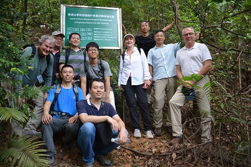 97日,专家一行考察了鼎湖山森林生态系统定位研究站(鼎湖山站)。鼎湖山站原站长周国逸研究员首先介绍了鼎湖山站的历史与现状,主要研究方向和目标定位,并重点展示了近年来鼎湖山站的发展建设和取得的丰硕成果。鼎湖山保护区管理局副局长莫江明研究员介绍了保护区的区域划分和科研服务功能。Vitousek教授、Matson 教授和张院士一行还专程考察了位于马尾松针叶林和季风常绿阔叶林的模拟氮沉降长期试验研究平台,亲自查看植物物种组成的变化,并与莫江明和鲁显楷博士等详细讨论了长期氮添加的生态效应,以及未来需要回答的科学问题。最后,一行专家还考察了氮磷添加试验样地,树干液流长期监测样地,以及位于五棵松试验样地的垂直移位试验和碳通量塔等野外观测平台。