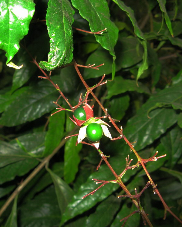 垂茉莉马鞭草科(Verbenaceae)大青属常绿灌木,植株高可达1—2m,小枝棱形,叶对生,披针形,长达10-25cm。白色花瓣5枚,下垂,花丝细长,花朵形似白蝶,枝条纤细,花姿飘逸,盛开时花香扑鼻,故名垂(枝)茉莉。花期为秋天至春天,果期为春夏之际。果成熟时,花蕚会由鲜红色转为紫红色,衬托着紫黑色的果实,有“黑叶龙吐珠”之称。