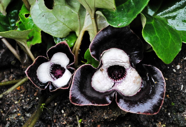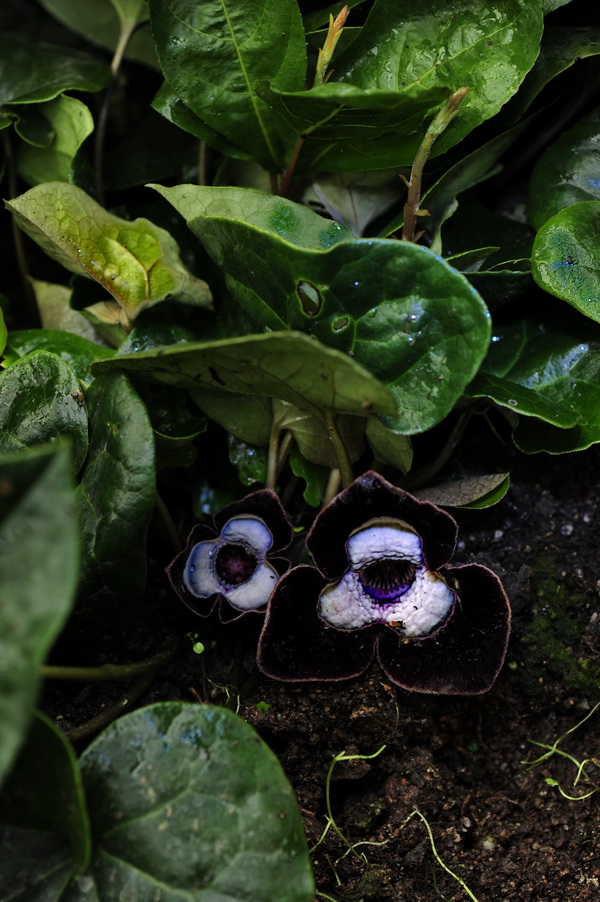 国宝大熊猫体型肥硕、毛色黑白相间,憨态可掬,深受世人钟爱。华南植物园内生长着不少与大熊猫一样的国宝级珍稀植物,在高山/极地温室里就有一种草药,最近正开着花,虽植物本身不及大熊猫珍贵,但其花酷似卡通版的大熊猫,也被称为“熊猫花”,又因其人工不易栽培,花更是难得一见,所以它在业内人士眼中也是如国宝一般珍贵。这种草药名为大花细辛(Asarum maximum Hemsl.),俗名花脸猫或翻天印。