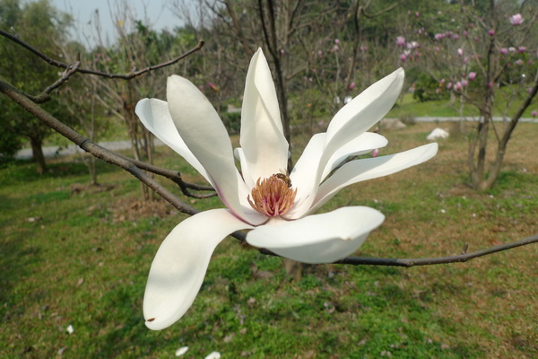 三月的广州,乍暖还寒,玉兰花悄然开放了。你看这一树白色的玉兰花,雪白亮丽,花香淡洁、雅致飘逸;那边又是满树的紫红色的二乔玉兰,姹紫嫣红、绚丽多彩、馥郁清香,吸引来翩翩飞舞的蜂媒蝶使,真是温馨四溢的满园春色。这些色彩多样的花儿正是世界著名的观赏植物——广义的玉兰花(就是植物学上的玉兰属植物)