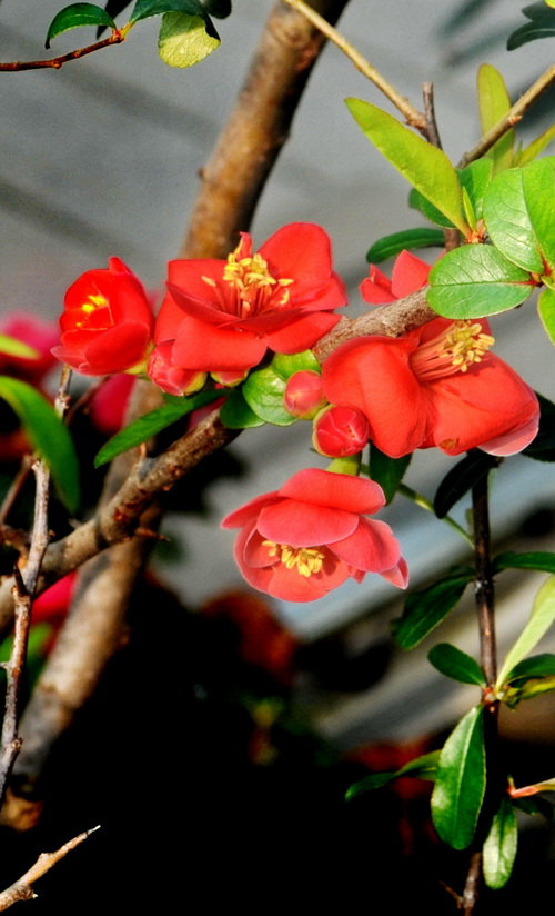 作为传统海棠的一种,贴梗海棠也是我国的传统名花之一,素有“国艳”、“花中神仙”、“花贵妃”之誉。历代文人墨客题咏不绝。陆游诗云:“虽艳无俗姿,太皇真富贵。”形容海棠艳美高雅。宋代刘子翚[huī] 诗云:“幽姿淑态弄春晴,梅借风流柳借轻,......几经夜雨香犹在,染尽胭脂画不成。”形容海棠似娴静的淑女,集梅、柳优点于一身而妩媚动人,雨后清香犹存,花艳难以描绘。一代大文豪苏东坡也为之倾倒,“只恐夜深花睡去,故烧高烛照红妆。”因此海棠雅号“解语花”。与其他几种相比,贴梗海棠的色彩更为鲜明浓郁,令人神为之夺。