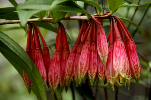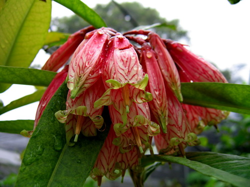 每年3-4月份开花时,圆筒状的花冠呈玫瑰红色,花冠上暗紫色的条纹为它增添了不少艺术的色彩;3-5朵小花聚生在老枝上,似红色的灯笼随风摆动,传递春天到来时生气勃勃的喜乐气息。