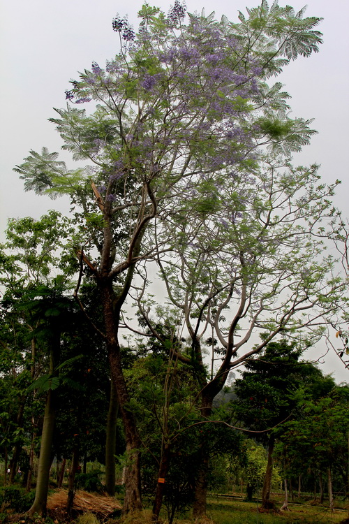 蓝花楹为一美丽的观叶、观花树种。分布在阿根廷、玻利维亚、巴西以及中国的广西、广东、海南、云南、福建等地。另外,其木质较软,是制作木雕工艺品的好材料。